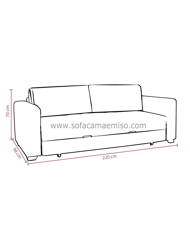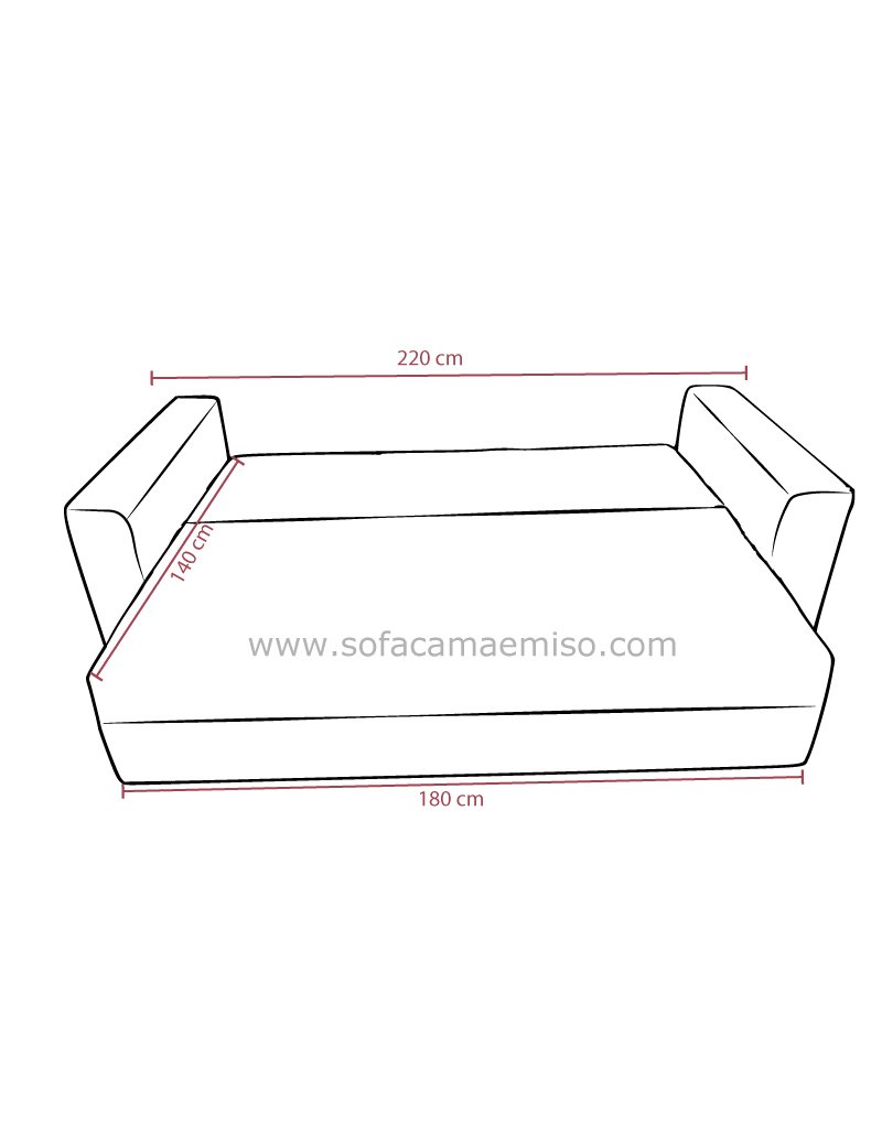 220cm Ancho con Brazos ,42cm Altura Sofa ,70cm Altura ,98 cm de fondo ,180cm x 140cm Cama Extendida |