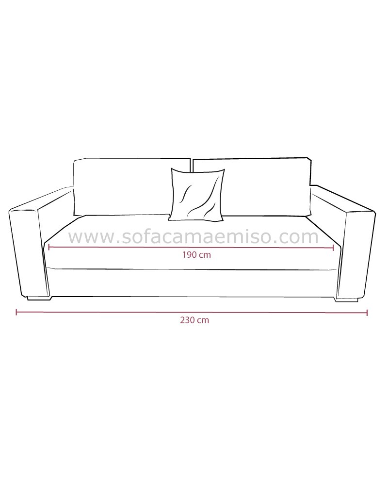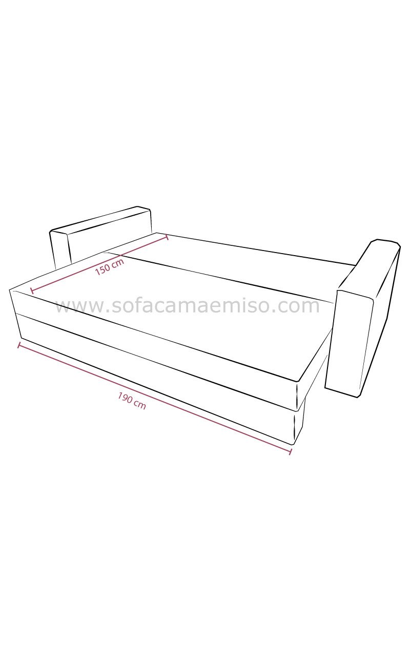 150 cm x 195 cama extendida ,230 ancho con brazos ,42cm Altura Sofa ,70 cm Alto ,98 cm de fondo |