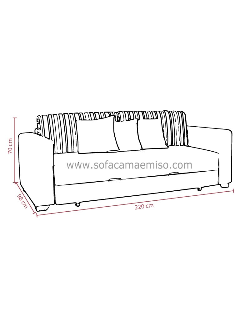 220cm Ancho con Brazos ,42cm Altura Sofa ,98 cm Fondo ,180cm x 140cm Cama Extendida ,70cm Alto |