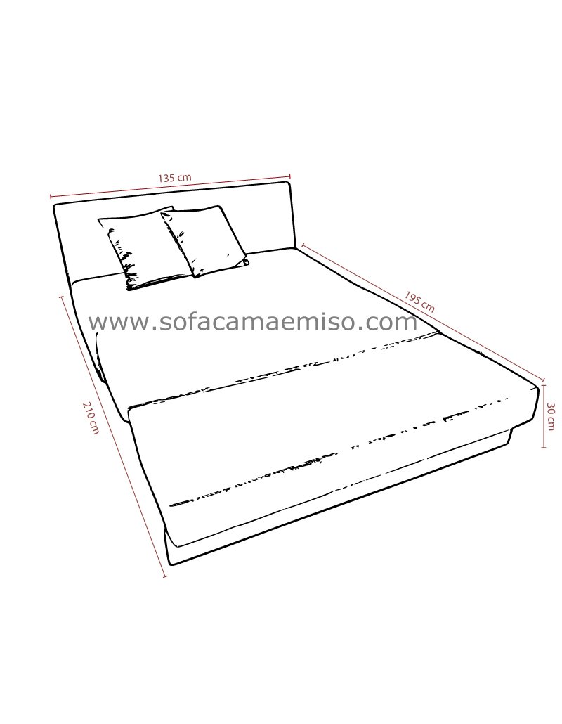 135cm x 195cm Cama extendida ,46 cm altura de Sofa ,86 cm Alto ,86 cm de Profundidad |