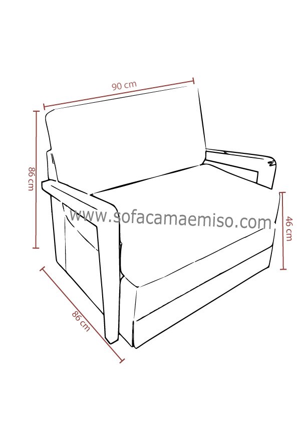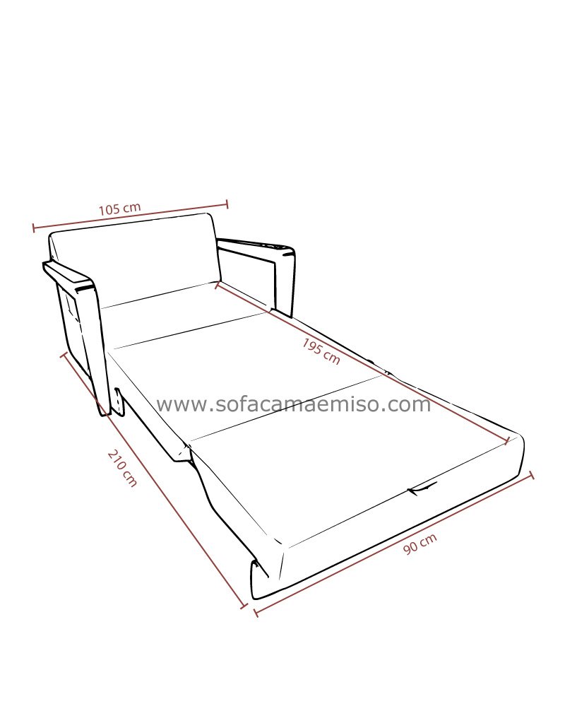 46 cm altura de Sofa ,86 cm Alto ,86 cm de Profundidad ,90cm x 195cm Cama extendida |