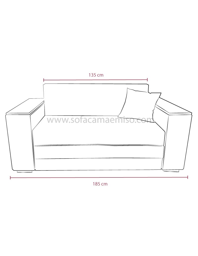 135cm x 195cm Cama extendida ,210cm Ancho con brazos ,46 cm altura de Sofa ,86 cm Alto ,86 cm de Profundidad |