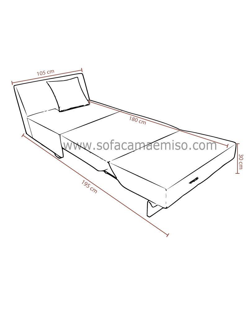 105cm x 180cm Cama ,42cm Altura Sofa ,83 cm de Alto ,83cm Fondo |