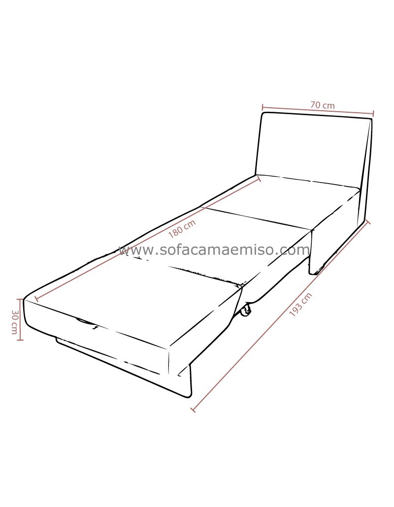 42cm Altura Sofa ,70cm Ancho ,70cm x 180cm Cama ,80 cm de Alto ,83cm Fondo |