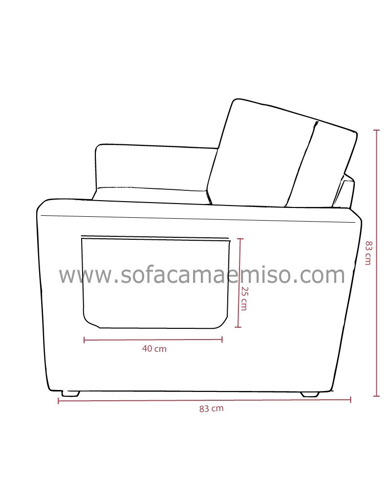 42cm Altura Sofa ,70cm x 180cm Cama ,83cm Altura ,83cm Profundidad ,94cm Ancho con Brazos |