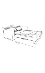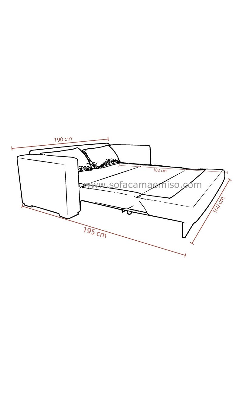 160 cm x 185 cm Cama extendida ,190 cm Ancho con brazos ,46 cm altura de Sofa ,86 cm Alto ,86 cm de Profundidad |