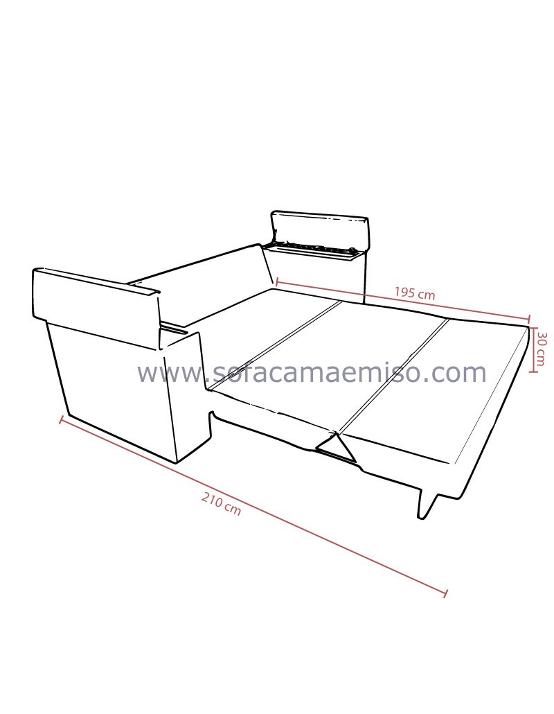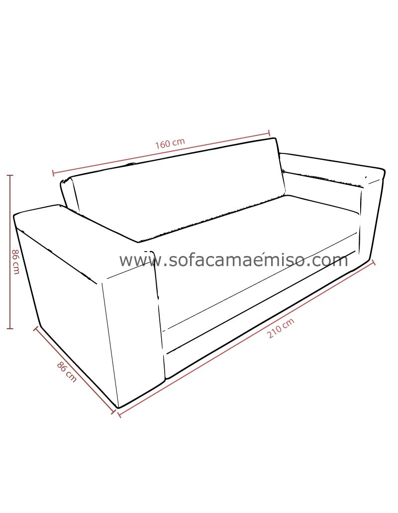 160cm x 195cm Cama ,210cm Ancho con brazos ,46 cm altura de Sofa ,86 cm Alto ,86 cm de Profundidad |