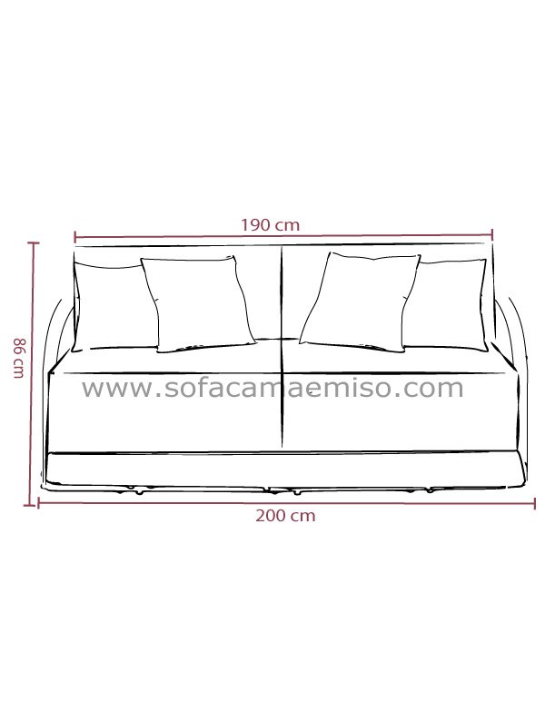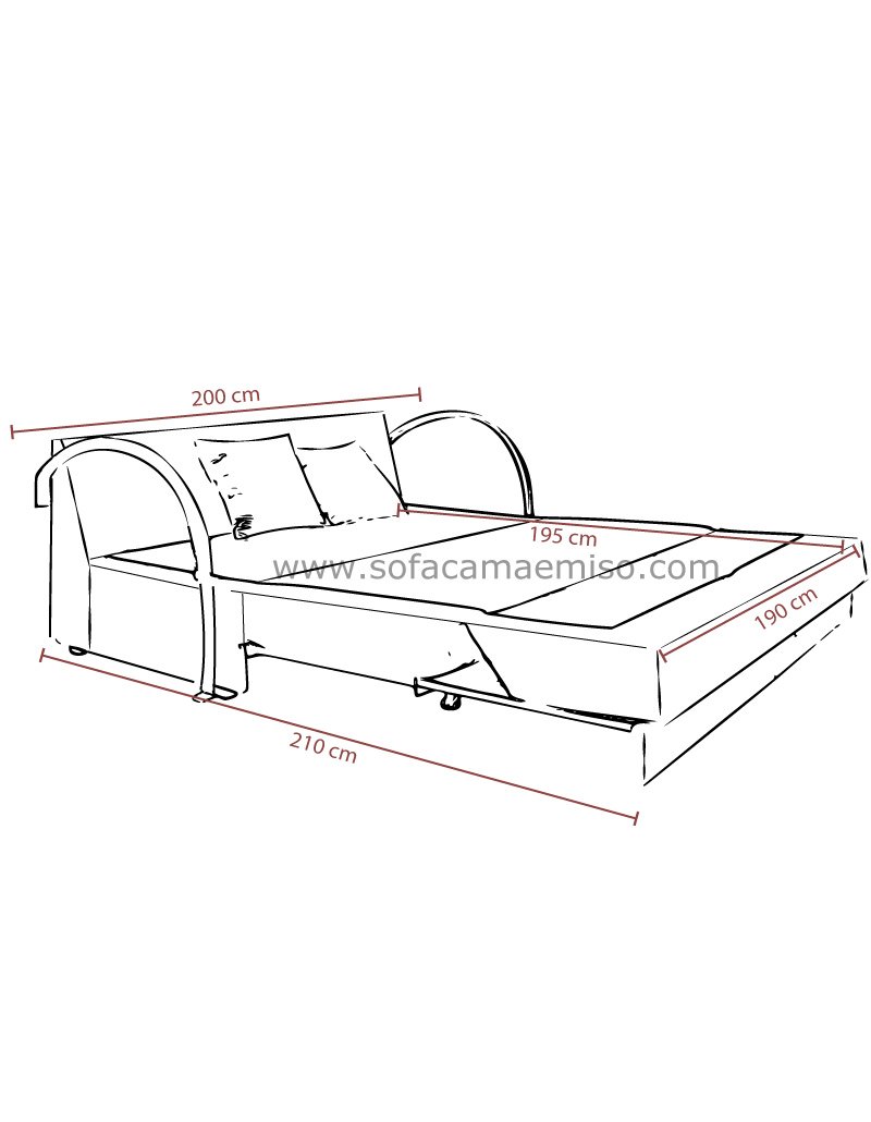 190 cm x 195 cm Cama Extendida ,202 cm Ancho con Brazos ,42cm Altura Sofa ,86 cm Alto ,86 cm de Profundidad |
