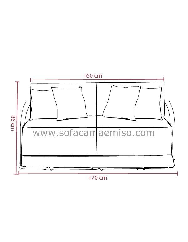 160cm x 195cm Cama ,172 cm Ancho con brazos ,86 cm Alto ,86 cm de Profundidad |