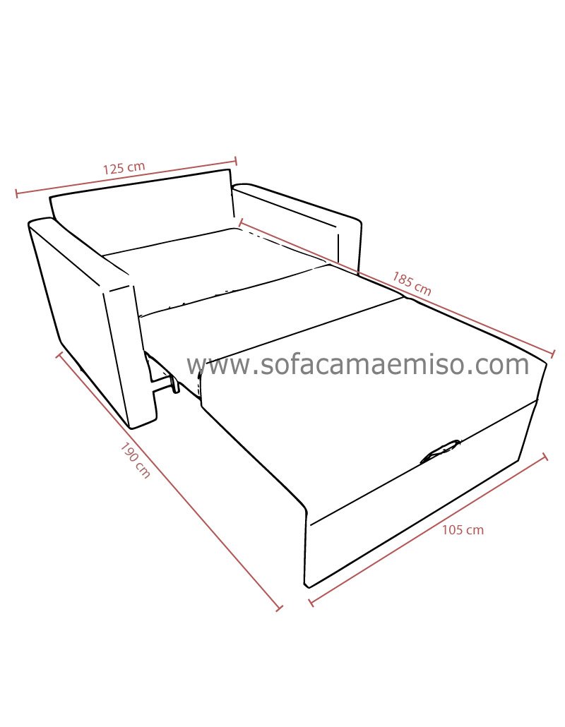 105cm x 185cm cama ,125 cm Ancho con brazos ,42cm Altura Sofa ,92 cm Altura ,92 cm fondo |