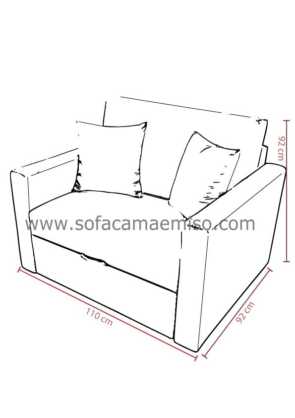 120cm Ancho con Brazos ,42cm Altura Sofa ,85cm Altura ,90cm x 185cm cama ,92 cm fondo |
