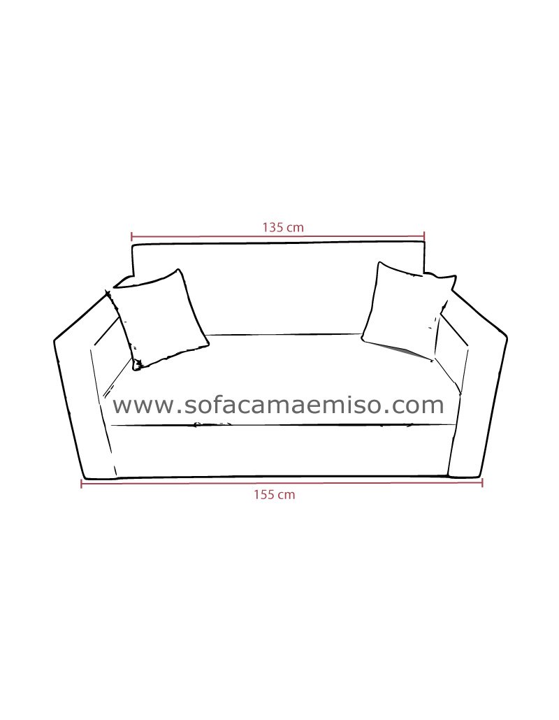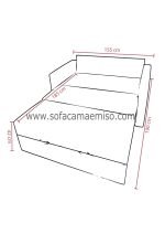 135cm x 185cm cama ,165cm Ancho con brazos ,42cm Altura Sofa ,85cm Altura ,92 cm fondo |