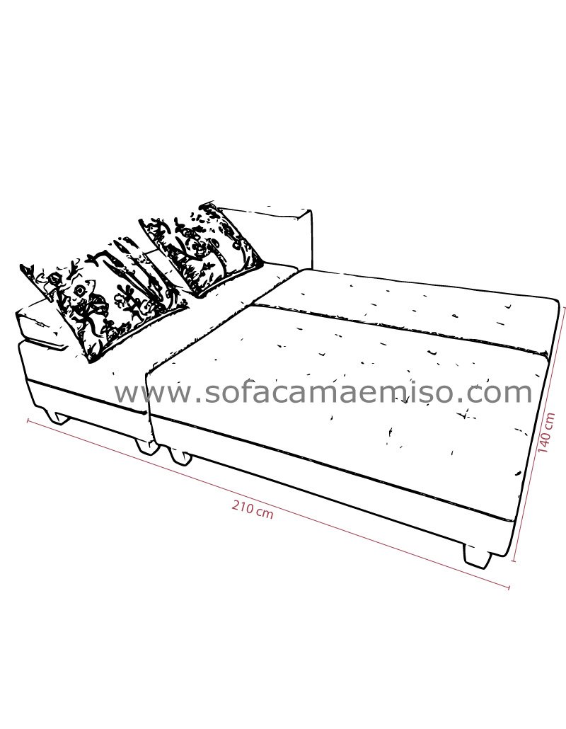 140cm x 210cm Cama Extendida ,150 cm Largo sofá ,42cm Altura Sofa ,70cm Altura |