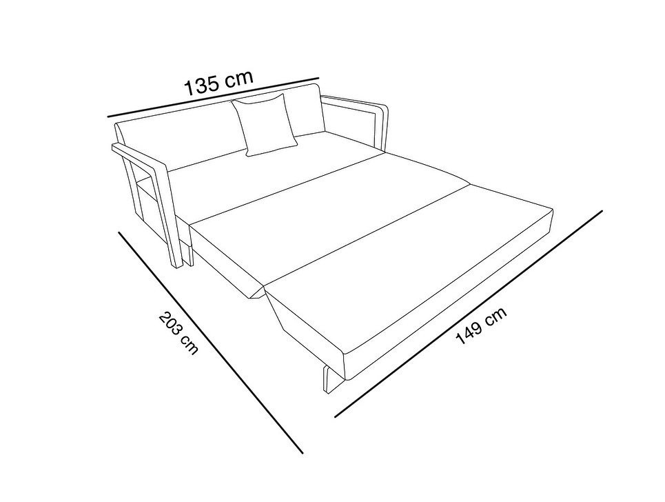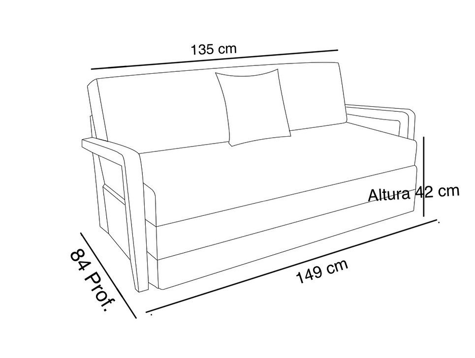 160cm x 195cm Cama ,175 cm Ancho total ,46 cm altura de Sofa ,86 cm Alto ,86 cm de Profundidad |