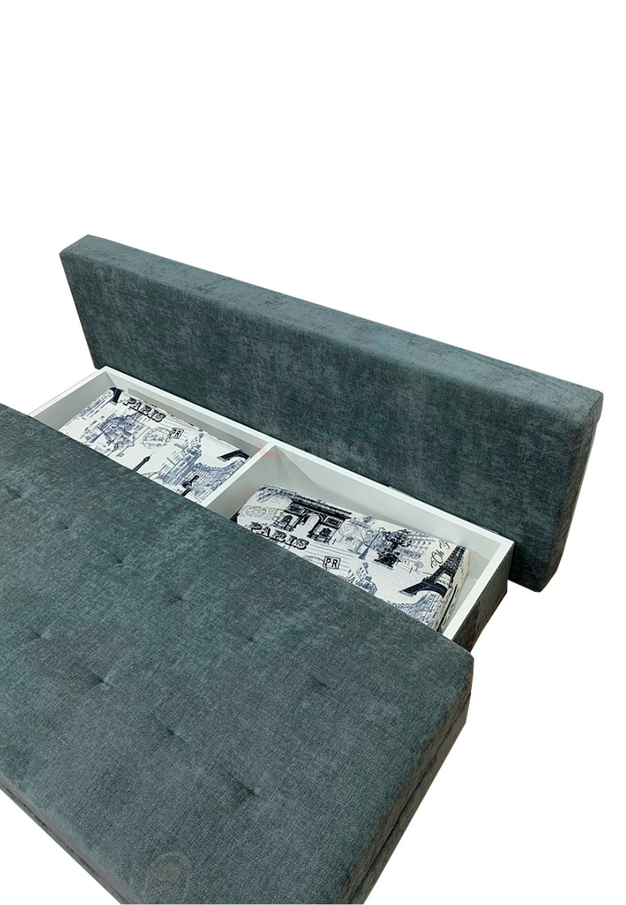 Incluye: Baúl en melamina de 18 milímetros, brazos sobre puestos, cojines decorativos